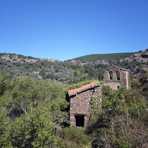La mayor parte de las antiguas casas, construidas en piedra, se encuentran en ruinas y la vegetación lo ha ocupado todo. Zarzamoras, helechos y cardos han tomado el interior y el exterior de las construcciones y casi todas las empinadas callejuelas, en otros tiempos rebosantes de vida, son intransitables. La espadaña de la iglesia sobresale por encima del resto de casas aunque la techumbre de la nave se ha hundido. Allí, junto a la iglesia, nos detenemos a descansar unos instantes antes de explorar el sitio.